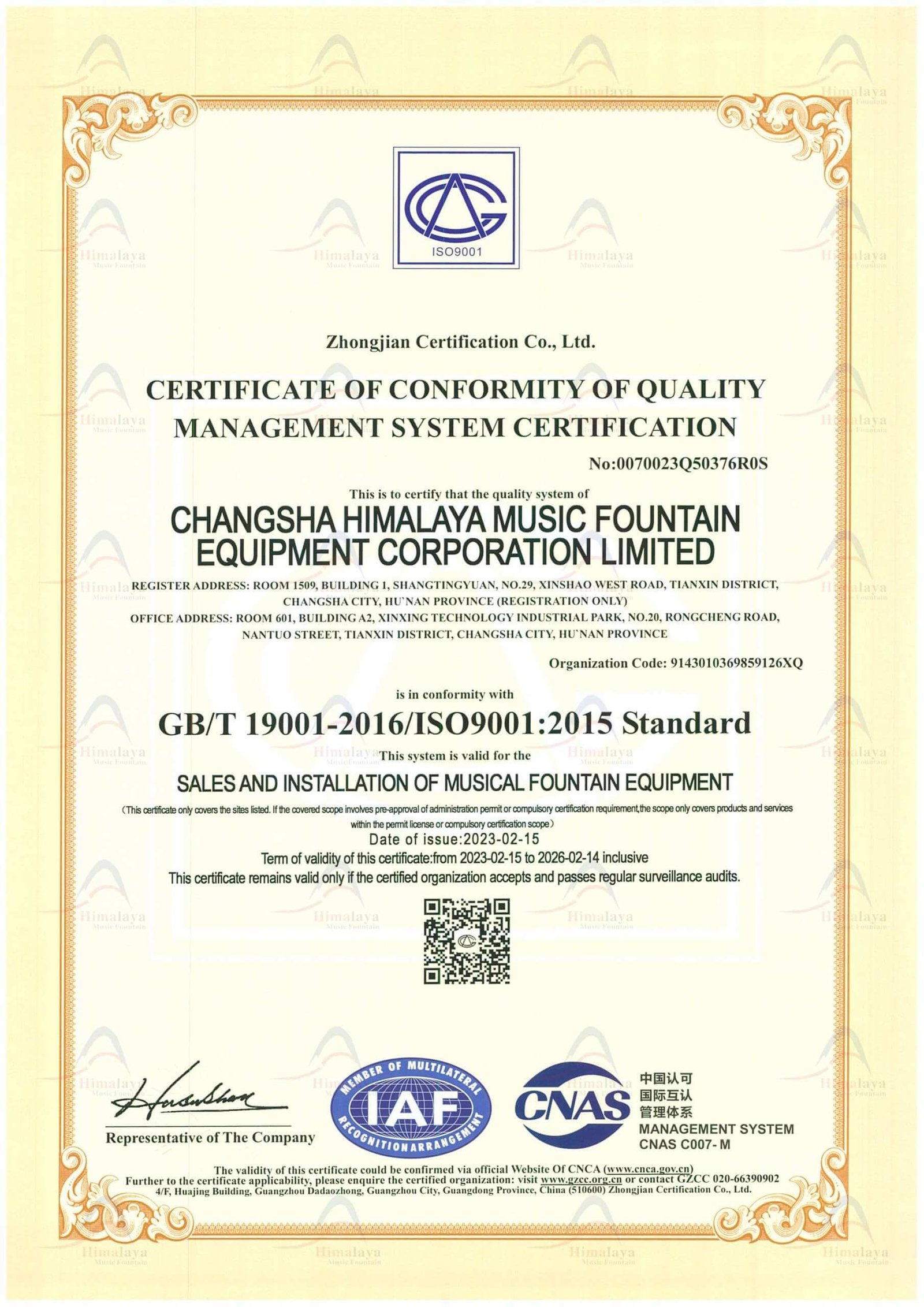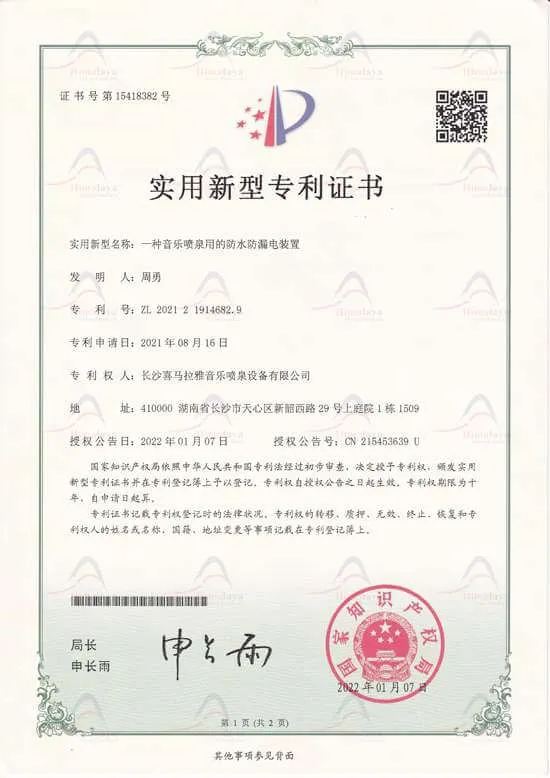 Himalaya Music Fountain, successfully passed the ISO9001 quality management system certification, offering various fountain products including nozzles, low-voltage underwater RGB LED lamps, music fountains, programmable fountains, interactive fountains and fountain control products, etc, contract to build large-scale music fountains, water screen projection and laser shows, and provide one-stop solutions for musical fountain. The main products all passed the national authoritative department inspection, and most of them won national patents. Since its establishment, Himalaya Music Fountain company has built hundreds of fountain projects in domestic and overseas markets, greatly appreciated in South America, the Middle East, and Southeast Asia area covering over 30 countries.